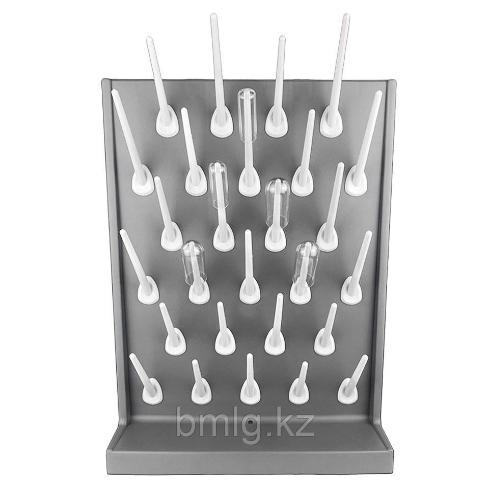 Лабораторная универсальная сушилка для пробирок и колб сделана из полипропилена.